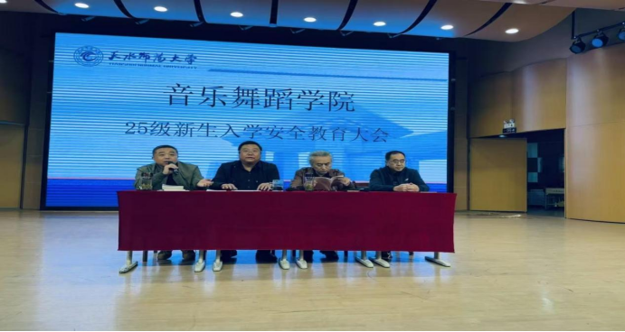为切实筑牢新生安全防线,引导音乐舞蹈学子系好入学“安全第一粒扣子”,10月9日,天水师范大学音乐舞蹈学院在音乐厅召开了2025级新生入学安全教育大会。会议由党总支副书记、副院长陈海主持,学院领导班子成员和25级全体新生共同参会。