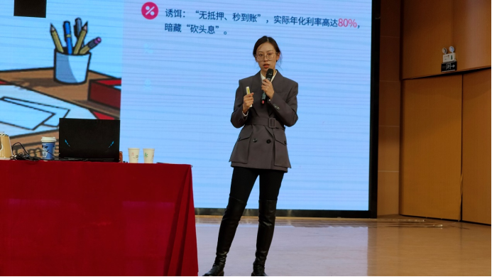 讲座伊始,张晓晗律师从“法律是生存课”这一核心观念展开强调“青春有边界,法律无例外”,指出法律既是约束行为的准则,更是守护青春的铠甲。她以真实案例为核心载体,重点剖析了校园及社会中与青年学生密切相关的法律风险点,例如通过校园欺凌的典型案例解读《中华人民共和国刑法》相关规定,明确欺凌行为的法律定位,引导同学们“不做欺凌者、不当受害者、不做旁观者”。同时张晓晗律师还从“电信诈骗”、“校园贷陷阱”“日常生活中的矛盾冲突”等与同学们生活息息相的经典案例入手,向同学们传授了实用的“高频自救术”,为同学们列举并详细讲解了从法律的角度如何规避风险,以及在各类意外问题出现后如何利用法律的武器保护自身的合法权益。