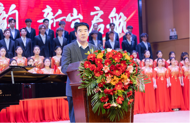 音乐会伊始,校长汪聚应致辞,他代表学校向全体师生致以新年的祝福,对学校过去一年在各方面发展上取得的成果给予高度肯定,同时指出,2026年是学校更名后十五五新征程的关键一年,呼吁老师与同学坚持不懈,同心同德,共创天水师范大学更加辉煌的明天。