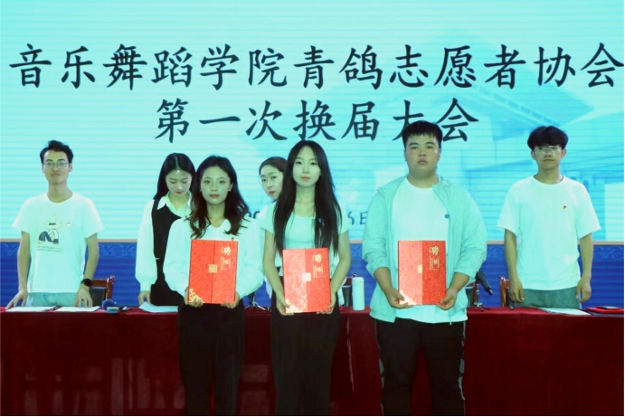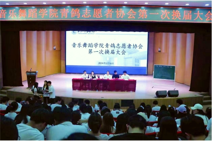 为推动音乐舞蹈学院青年志愿者协会持续发展,激发新的组织活力。近日,我院青鸽志愿者协会第一次换届大会在音乐厅顺利召开。党总支副书记、副院长陈海,学院团委书记成雅玮、辅导员刘文静、师文家及学院152名学生志愿者参加。