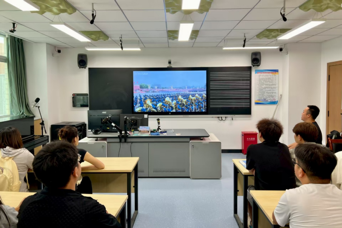 音乐舞蹈学院的师生跟随阅兵进程,深切感受人民军队的强大与维护和平的坚定意志;聆听重要讲话,铭记中国人民抗日战争在世界反法西斯战争中的重要地位与巨大牺牲。