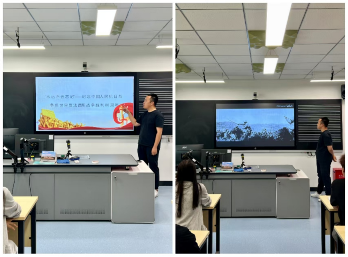 2025年9月3日上午,天水师范大学音乐舞蹈学院组织全体师生集中收看了纪念中国人民抗日战争暨世界反法西斯战争胜利80周年阅兵仪式盛况。观礼结束后,学院团委趁热打铁,组织开展了反法西斯战争历史主题团课,将视觉震撼转化为持久的历史认知和精神滋养。