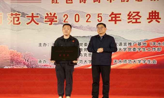 929日晚,由党委宣传部、教务处、党委学生工作部、校语委、马克思主义学院、校团委、学生会联合举办的天水师范大学“传诵红色经典 赓续红色血脉”——红色诗词中的思政课暨首届经典诗文诵读大赛在文化广场举行。各参赛队伍各展所长,或激昂高亢、或温婉深情,通过诵读红色经典诗词传递信仰力量。经过激烈角逐,音乐舞蹈学院2025级新生组成的参赛团队凭借“诵读+合唱+舞蹈”的创新演绎、饱满真挚的情感表达与扎实的专业艺术功底,从全校17个参赛学院中脱颖而出,最终拔得头筹,荣获特等奖、优秀组织奖。