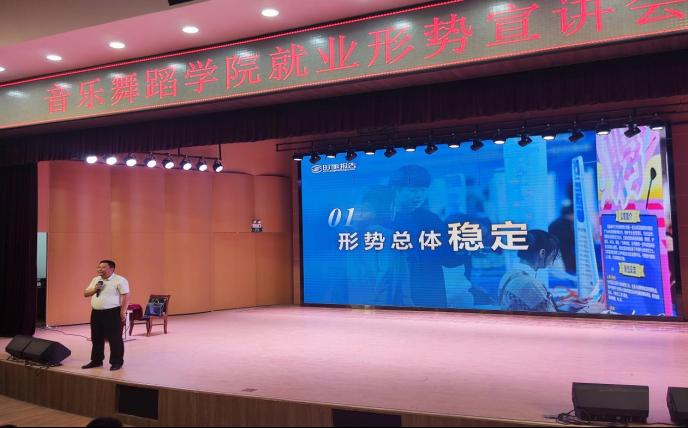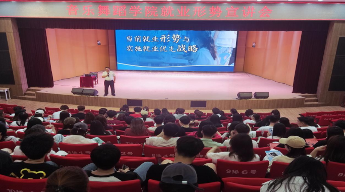 为进一步加强音乐舞蹈学院青年学生对当前大学生就业形势的认识,引导青年大学生树立正确的就业观,发挥就业育人实效。4月22日下午,音乐舞蹈学院党总支书记谢克为学院青年学生讲授“当前就业形势与实施就业优先战略”为主题的就业形势宣讲会,学院辅导员和200余名青年学生参加活动。