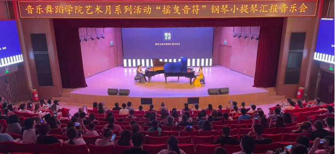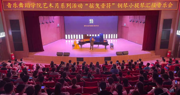 2021年6月15日晚上20:00,音乐舞蹈学院全体钢琴教师、小提琴教师在音乐厅举办了音乐舞蹈学院艺术月系列活动——“摇曳音符”钢琴小提琴汇报音乐会。学院声乐、钢琴教师及学生三百余人参加了音乐会。